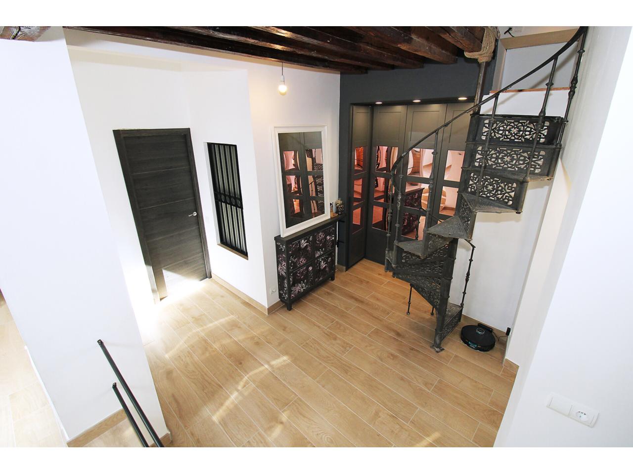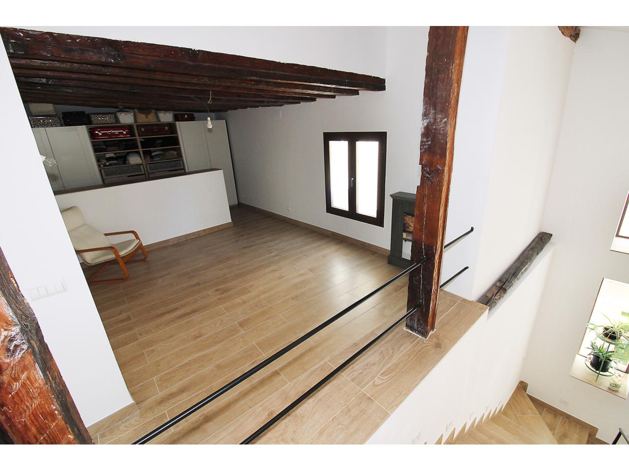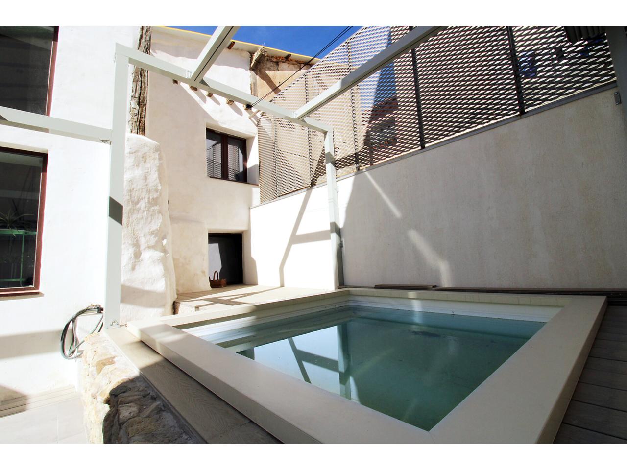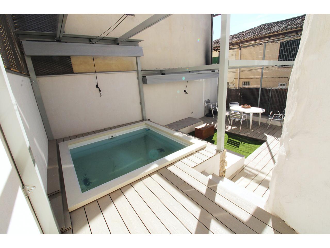 DescripciónEspectacular casa adosada recientemente reformada con 240 m2 construidos, distribuidos en 3 plantas. Dispone en planta baja de espacioso e increible hall de entrada a doble altura para disfrutar de la sensación de espacio y luminosidad, desde este hall disponemos de acceso a patio privado de 40m2 con dos espacios a diferentes alturas, la zona de baño con piscina y la zona del cenador, ambas zonas con toldos retráctiles. El hall también nos da acceso al salón, amplio y luminoso con ventana a la zona de baño y acceso a la cocina, semi independiente, completamente amueblada, con encimera compacta porcelánica efecto mármol Laurent con pequeño y adorable office. La cocina nos da acceso a dos habitaciones, una utilizada como trastero y la otra como taller con ventana a la calle, entre ambas se encuentra el aseo. Subimos a la primera planta por una escalera abierta que dota de mucha luminosidad a esta planta, dispone de dos amplios dormitorios abuhardillados con techo alto y vigas de madera vista, con ventanas tipo Velux de pvc color blanco con cristales de climalit. Baño completo con plato de ducha a nivel de suelo y un cuarto adicional utilizado como lavadero para la colada y donde se encuentra el sistema de calefacción y refrigeración de la vivienda. Disponemos de un vestidor en el distribuidor de la primera planta que nos da acceso a través de una escalera de caracol a una planta abuhardillada con zona de descanso y almacenaje. La vivienda goza de estupendas calidades como ventanas verticales oscilobatientes con marco pvc de color marrón y cristal de climalit, calefacción y refrigeración a través de aerotermia con suelo radiante en toda la vivienda. Puertas de madera de color gris oscuro, paredes lisas, puerta acorazada, suelos cerámicos. En la planta -1 dispone de cueva con luz eléctrica. Ubicado en Torrelaguna en pleno casco urbano con todos los servicios en las inmediaciones. El Municipio dispone de notaria, juzgados, registro de la propiedad, supermercados, panaderías, agencias bancarias, bares y restaurantes, entre otros servicios, en pocas palabras es un pueblo ideal para vivir. Torrelaguna se encuentra a 43 km de distancia de Guadalajara y a 61 km de Madrid. Desde esta última ciudad es sencillo llegar en transporte público tomando el autobús interurbano 197. Si buscas desconectar de la ciudad, Torrelaguna es el sitio perfecto.