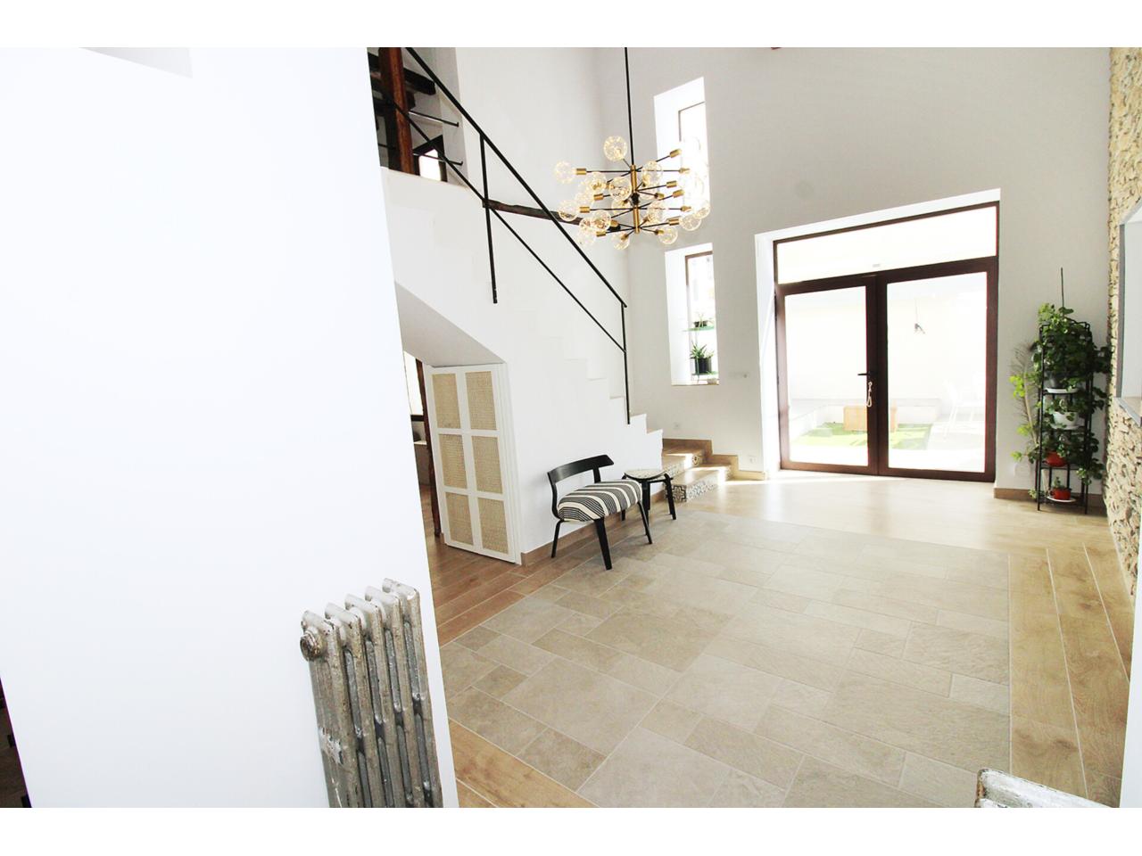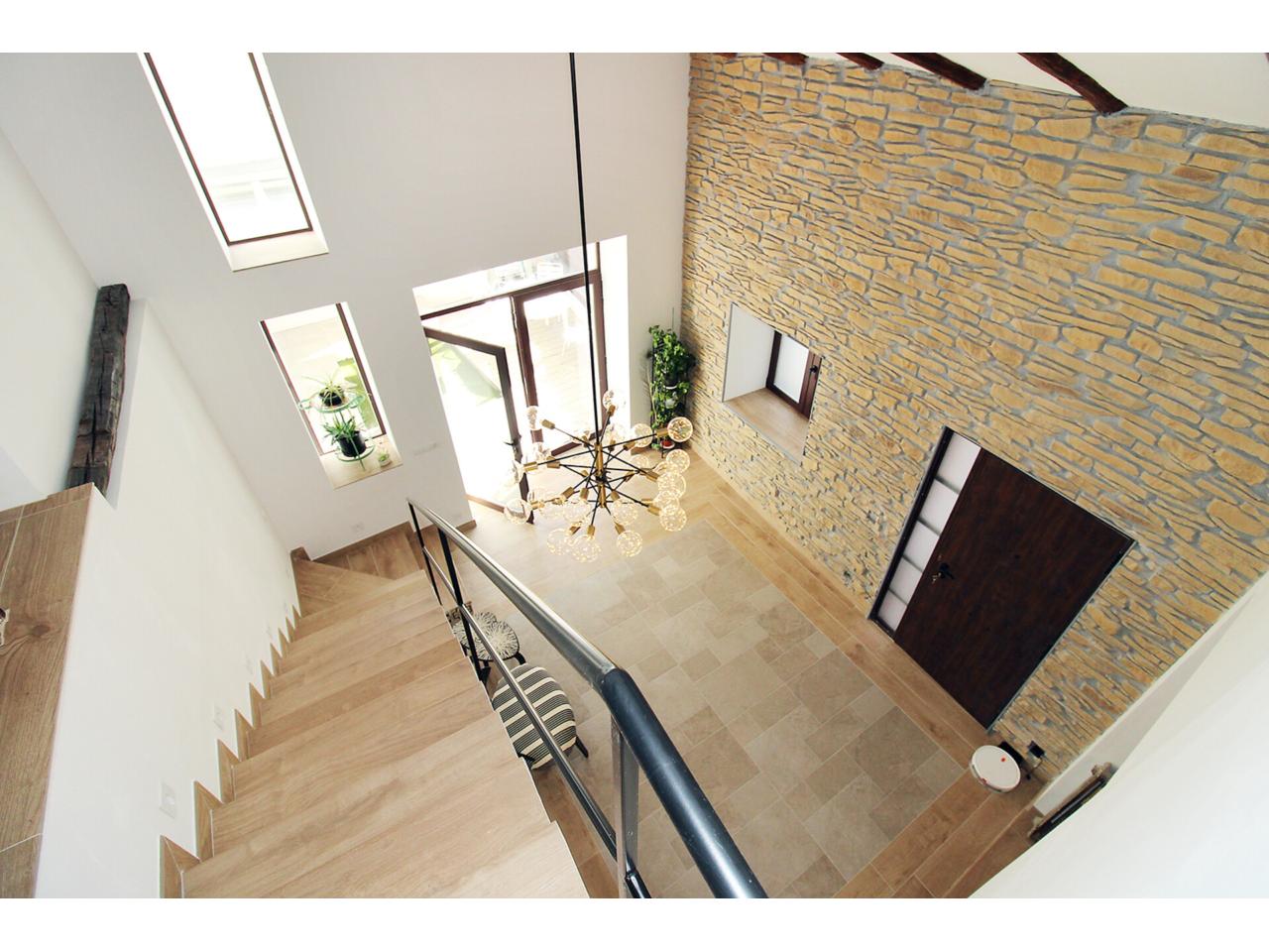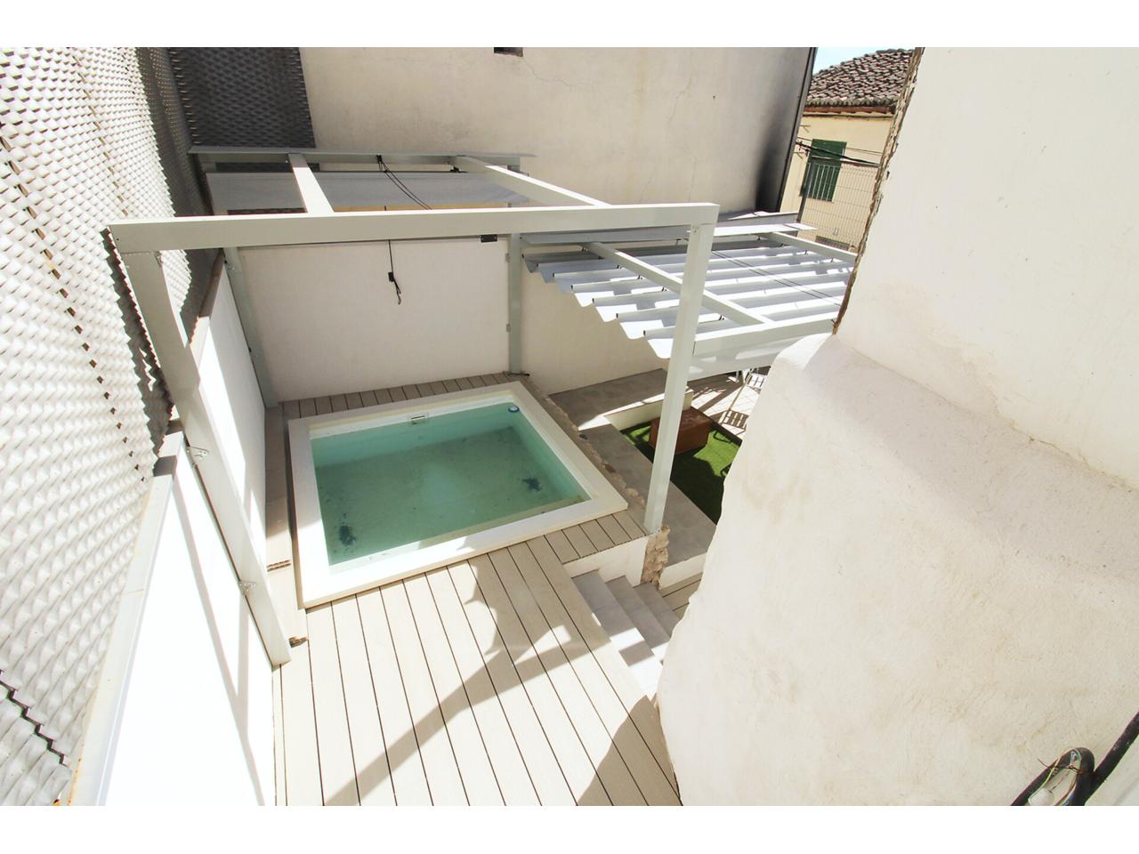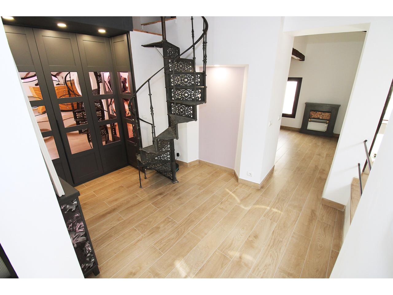 DescripciónEspectacular casa adosada recientemente reformada con 240 m2 construidos, distribuidos en 3 plantas. Dispone en planta baja de espacioso e increible hall de entrada a doble altura para disfrutar de la sensación de espacio y luminosidad, desde este hall disponemos de acceso a patio privado de 40m2 con dos espacios a diferentes alturas, la zona de baño con piscina y la zona del cenador, ambas zonas con toldos retráctiles. El hall también nos da acceso al salón, amplio y luminoso con ventana a la zona de baño y acceso a la cocina, semi independiente, completamente amueblada, con encimera compacta porcelánica efecto mármol Laurent con pequeño y adorable office. La cocina nos da acceso a dos habitaciones, una utilizada como trastero y la otra como taller con ventana a la calle, entre ambas se encuentra el aseo. Subimos a la primera planta por una escalera abierta que dota de mucha luminosidad a esta planta, dispone de dos amplios dormitorios abuhardillados con techo alto y vigas de madera vista, con ventanas tipo Velux de pvc color blanco con cristales de climalit. Baño completo con plato de ducha a nivel de suelo y un cuarto adicional utilizado como lavadero para la colada y donde se encuentra el sistema de calefacción y refrigeración de la vivienda. Disponemos de un vestidor en el distribuidor de la primera planta que nos da acceso a través de una escalera de caracol a una planta abuhardillada con zona de descanso y almacenaje. La vivienda goza de estupendas calidades como ventanas verticales oscilobatientes con marco pvc de color marrón y cristal de climalit, calefacción y refrigeración a través de aerotermia con suelo radiante en toda la vivienda. Puertas de madera de color gris oscuro, paredes lisas, puerta acorazada, suelos cerámicos. En la planta -1 dispone de cueva con luz eléctrica. Ubicado en Torrelaguna en pleno casco urbano con todos los servicios en las inmediaciones. El Municipio dispone de notaria, juzgados, registro de la propiedad, supermercados, panaderías, agencias bancarias, bares y restaurantes, entre otros servicios, en pocas palabras es un pueblo ideal para vivir. Torrelaguna se encuentra a 43 km de distancia de Guadalajara y a 61 km de Madrid. Desde esta última ciudad es sencillo llegar en transporte público tomando el autobús interurbano 197. Si buscas desconectar de la ciudad, Torrelaguna es el sitio perfecto.