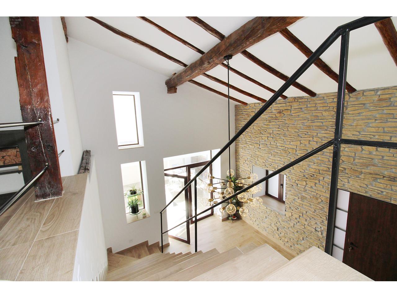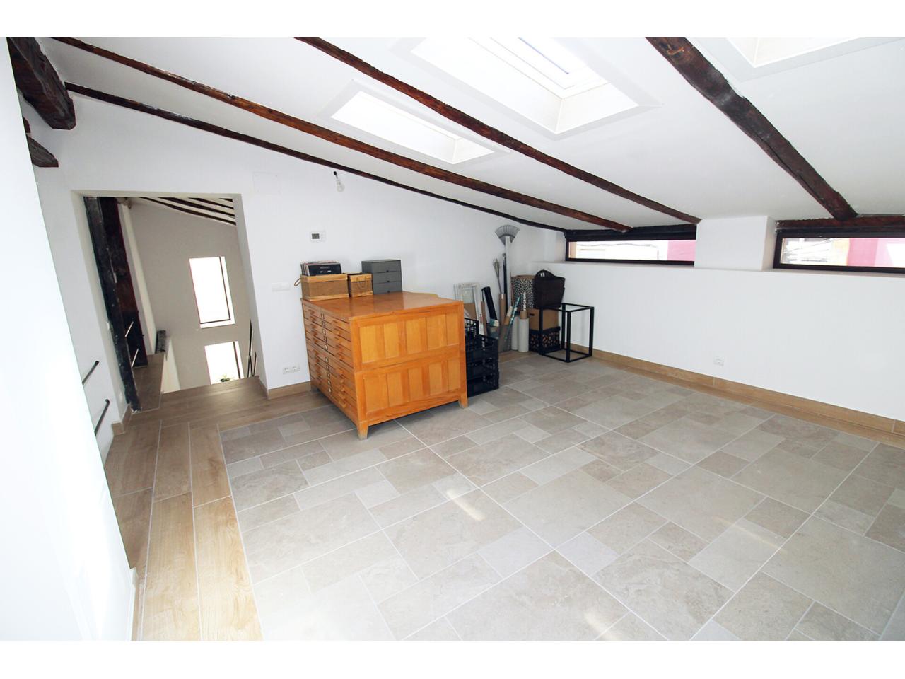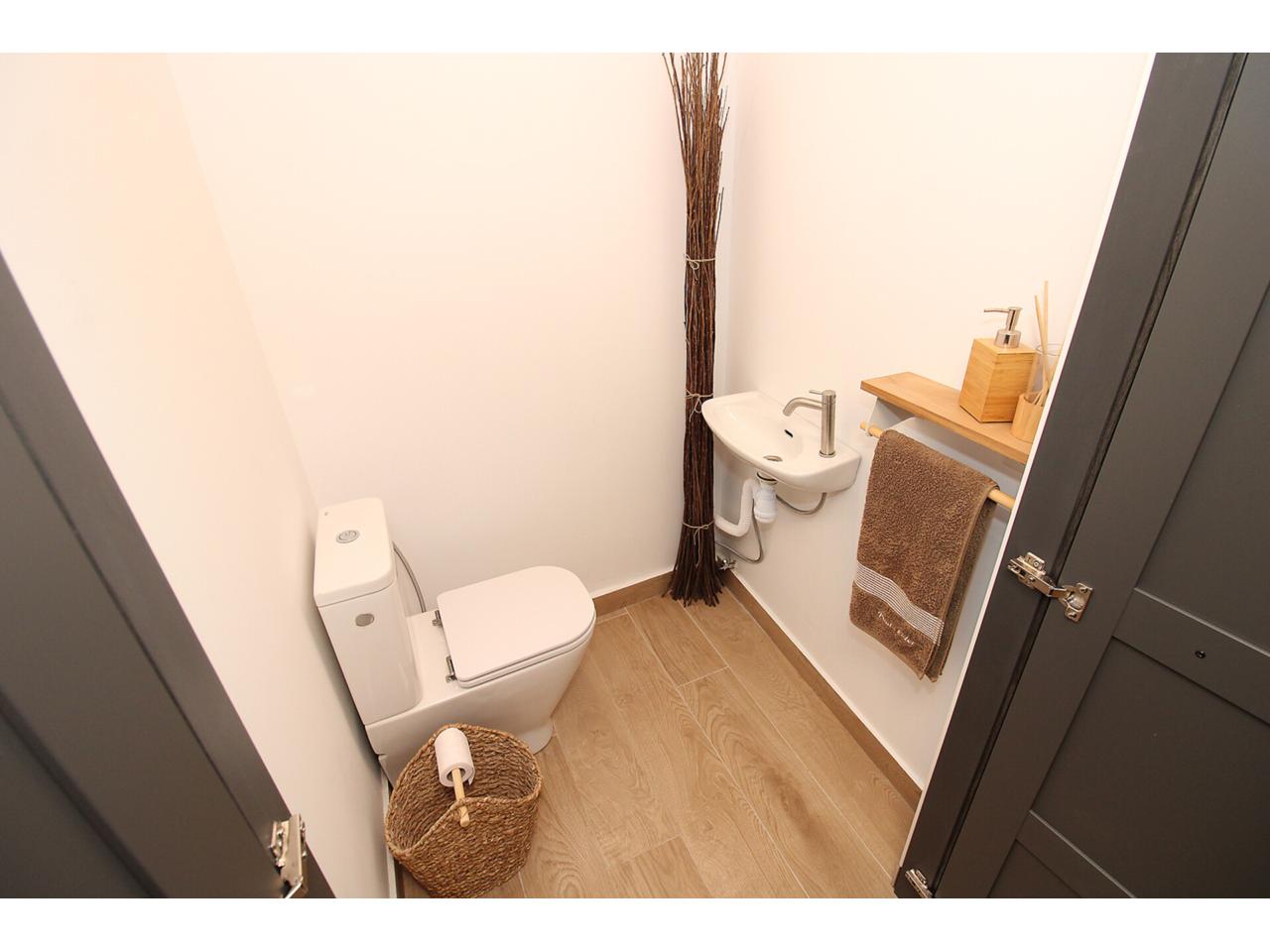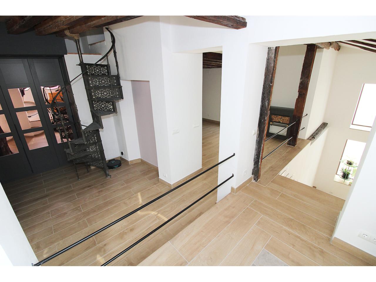 DescripciónEspectacular casa adosada recientemente reformada con 240 m2 construidos, distribuidos en 3 plantas. Dispone en planta baja de espacioso e increible hall de entrada a doble altura para disfrutar de la sensación de espacio y luminosidad, desde este hall disponemos de acceso a patio privado de 40m2 con dos espacios a diferentes alturas, la zona de baño con piscina y la zona del cenador, ambas zonas con toldos retráctiles. El hall también nos da acceso al salón, amplio y luminoso con ventana a la zona de baño y acceso a la cocina, semi independiente, completamente amueblada, con encimera compacta porcelánica efecto mármol Laurent con pequeño y adorable office. La cocina nos da acceso a dos habitaciones, una utilizada como trastero y la otra como taller con ventana a la calle, entre ambas se encuentra el aseo. Subimos a la primera planta por una escalera abierta que dota de mucha luminosidad a esta planta, dispone de dos amplios dormitorios abuhardillados con techo alto y vigas de madera vista, con ventanas tipo Velux de pvc color blanco con cristales de climalit. Baño completo con plato de ducha a nivel de suelo y un cuarto adicional utilizado como lavadero para la colada y donde se encuentra el sistema de calefacción y refrigeración de la vivienda. Disponemos de un vestidor en el distribuidor de la primera planta que nos da acceso a través de una escalera de caracol a una planta abuhardillada con zona de descanso y almacenaje. La vivienda goza de estupendas calidades como ventanas verticales oscilobatientes con marco pvc de color marrón y cristal de climalit, calefacción y refrigeración a través de aerotermia con suelo radiante en toda la vivienda. Puertas de madera de color gris oscuro, paredes lisas, puerta acorazada, suelos cerámicos. En la planta -1 dispone de cueva con luz eléctrica. Ubicado en Torrelaguna en pleno casco urbano con todos los servicios en las inmediaciones. El Municipio dispone de notaria, juzgados, registro de la propiedad, supermercados, panaderías, agencias bancarias, bares y restaurantes, entre otros servicios, en pocas palabras es un pueblo ideal para vivir. Torrelaguna se encuentra a 43 km de distancia de Guadalajara y a 61 km de Madrid. Desde esta última ciudad es sencillo llegar en transporte público tomando el autobús interurbano 197. Si buscas desconectar de la ciudad, Torrelaguna es el sitio perfecto.