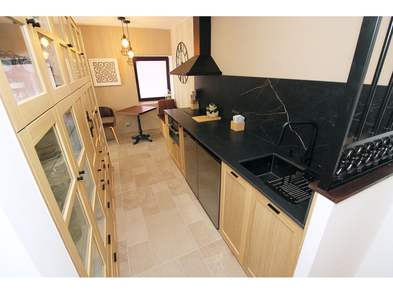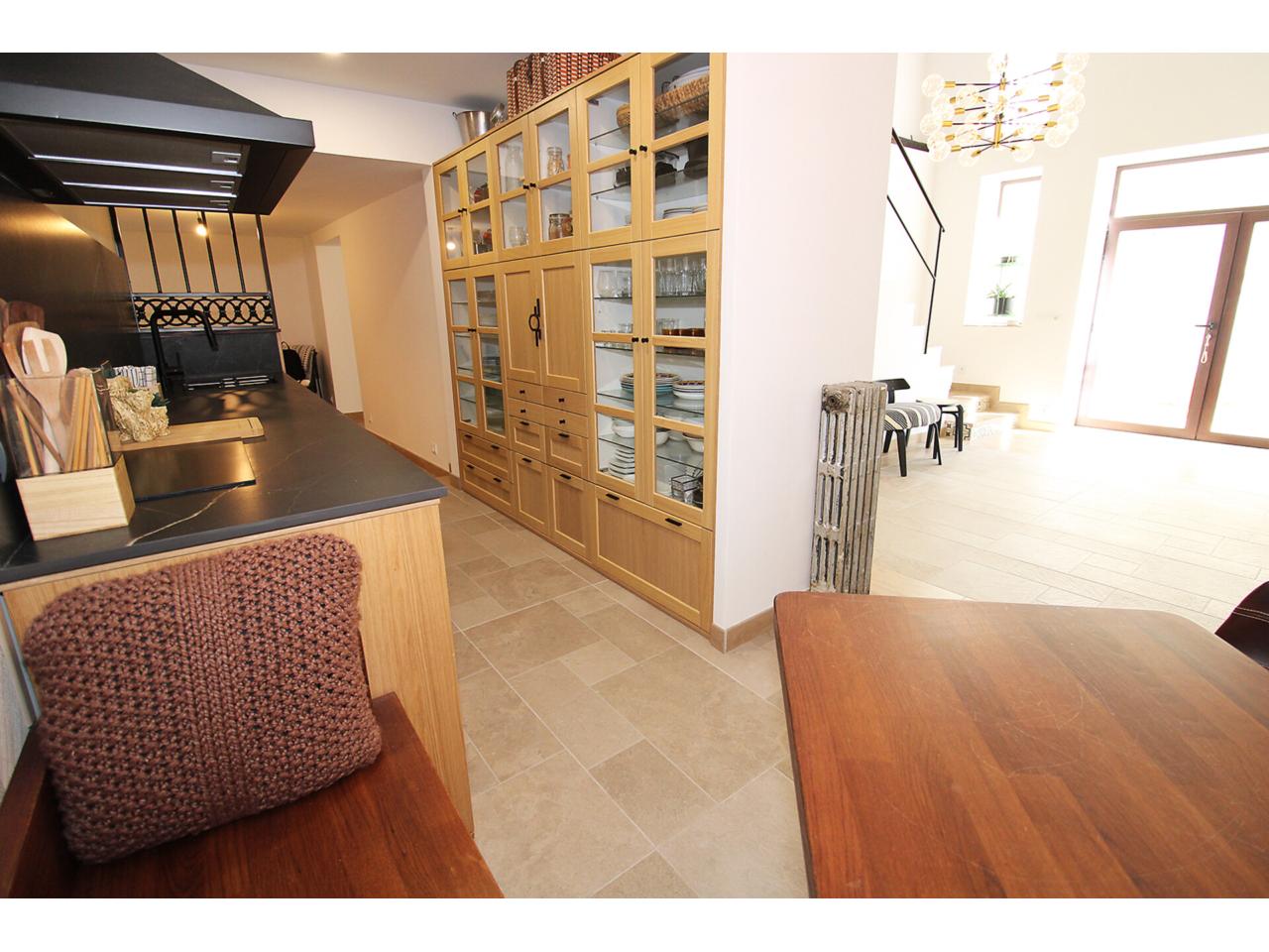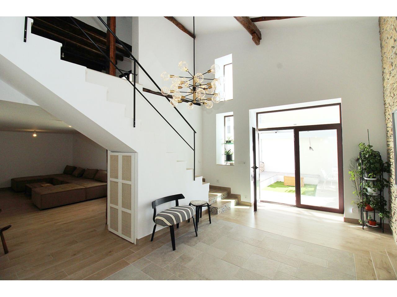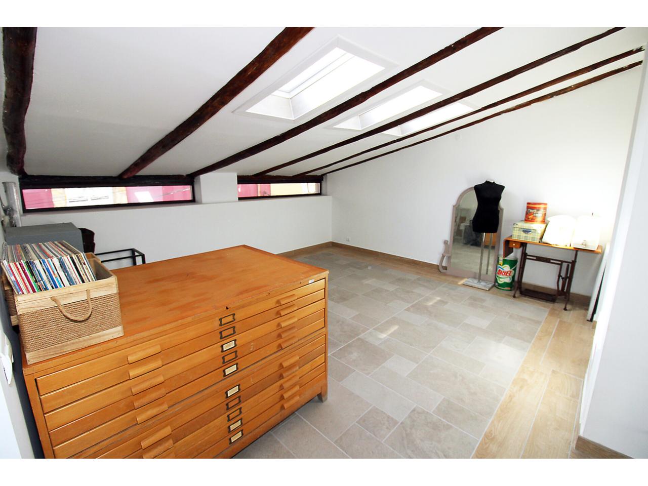 DescripciónEspectacular casa adosada recientemente reformada con 240 m2 construidos, distribuidos en 3 plantas. Dispone en planta baja de espacioso e increible hall de entrada a doble altura para disfrutar de la sensación de espacio y luminosidad, desde este hall disponemos de acceso a patio privado de 40m2 con dos espacios a diferentes alturas, la zona de baño con piscina y la zona del cenador, ambas zonas con toldos retráctiles. El hall también nos da acceso al salón, amplio y luminoso con ventana a la zona de baño y acceso a la cocina, semi independiente, completamente amueblada, con encimera compacta porcelánica efecto mármol Laurent con pequeño y adorable office. La cocina nos da acceso a dos habitaciones, una utilizada como trastero y la otra como taller con ventana a la calle, entre ambas se encuentra el aseo. Subimos a la primera planta por una escalera abierta que dota de mucha luminosidad a esta planta, dispone de dos amplios dormitorios abuhardillados con techo alto y vigas de madera vista, con ventanas tipo Velux de pvc color blanco con cristales de climalit. Baño completo con plato de ducha a nivel de suelo y un cuarto adicional utilizado como lavadero para la colada y donde se encuentra el sistema de calefacción y refrigeración de la vivienda. Disponemos de un vestidor en el distribuidor de la primera planta que nos da acceso a través de una escalera de caracol a una planta abuhardillada con zona de descanso y almacenaje. La vivienda goza de estupendas calidades como ventanas verticales oscilobatientes con marco pvc de color marrón y cristal de climalit, calefacción y refrigeración a través de aerotermia con suelo radiante en toda la vivienda. Puertas de madera de color gris oscuro, paredes lisas, puerta acorazada, suelos cerámicos. En la planta -1 dispone de cueva con luz eléctrica. Ubicado en Torrelaguna en pleno casco urbano con todos los servicios en las inmediaciones. El Municipio dispone de notaria, juzgados, registro de la propiedad, supermercados, panaderías, agencias bancarias, bares y restaurantes, entre otros servicios, en pocas palabras es un pueblo ideal para vivir. Torrelaguna se encuentra a 43 km de distancia de Guadalajara y a 61 km de Madrid. Desde esta última ciudad es sencillo llegar en transporte público tomando el autobús interurbano 197. Si buscas desconectar de la ciudad, Torrelaguna es el sitio perfecto.