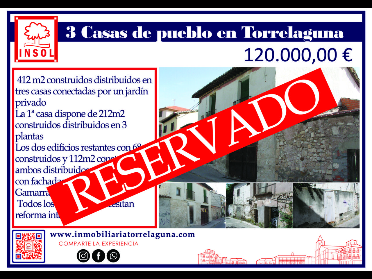 Un total de 412 m2 construidos distribuidos en tres casas conectadas por un jardín privado. La principal con fachada y acceso por Paseo de la Varguilla con una localización inmejorable, dispone de 212m2 construidos distribuidos en 3 plantas. En planta baja un amplio garaje con techos muy altos y con espacio para más de 4 vehículos. En primera planta la vivienda con 4 dormitorios, una cocina independiente con vistas al jardín interior y un cuarto de baño. En última planta, la buhardilla con altura suficiente para habilitarla como habitación. Los dos edificios restantes con 68m2 construidos y 112m2 construidos ambos distribuidos en tres alturas con fachadas a la calle Juan de Gamarra. Todos los inmuebles necesitan reforma integral. Ubicado en uno de los mejores emplazamientos de Torrelaguna a pocos metros de la plaza mayor y colindado con el casco histórico del municipio. Es una magnífica oportunidad para reformar ambos edificios y darle una segunda vida a este inmueble tan característico o para transformarlo en una casa rural única en Torrelaguna.