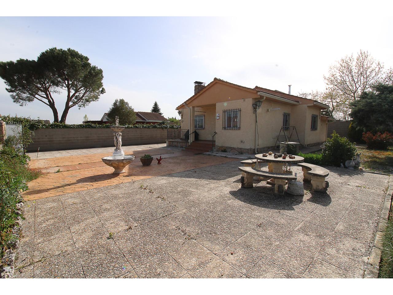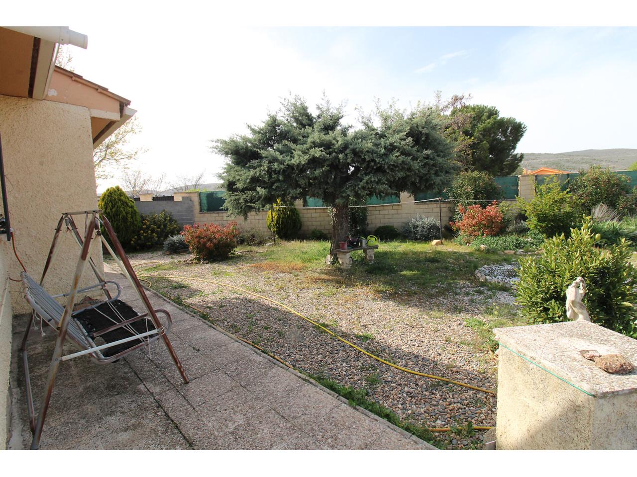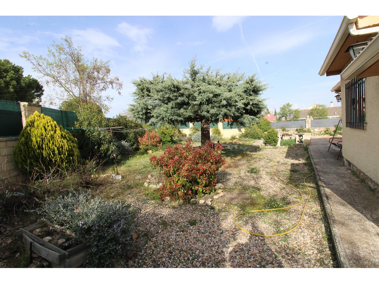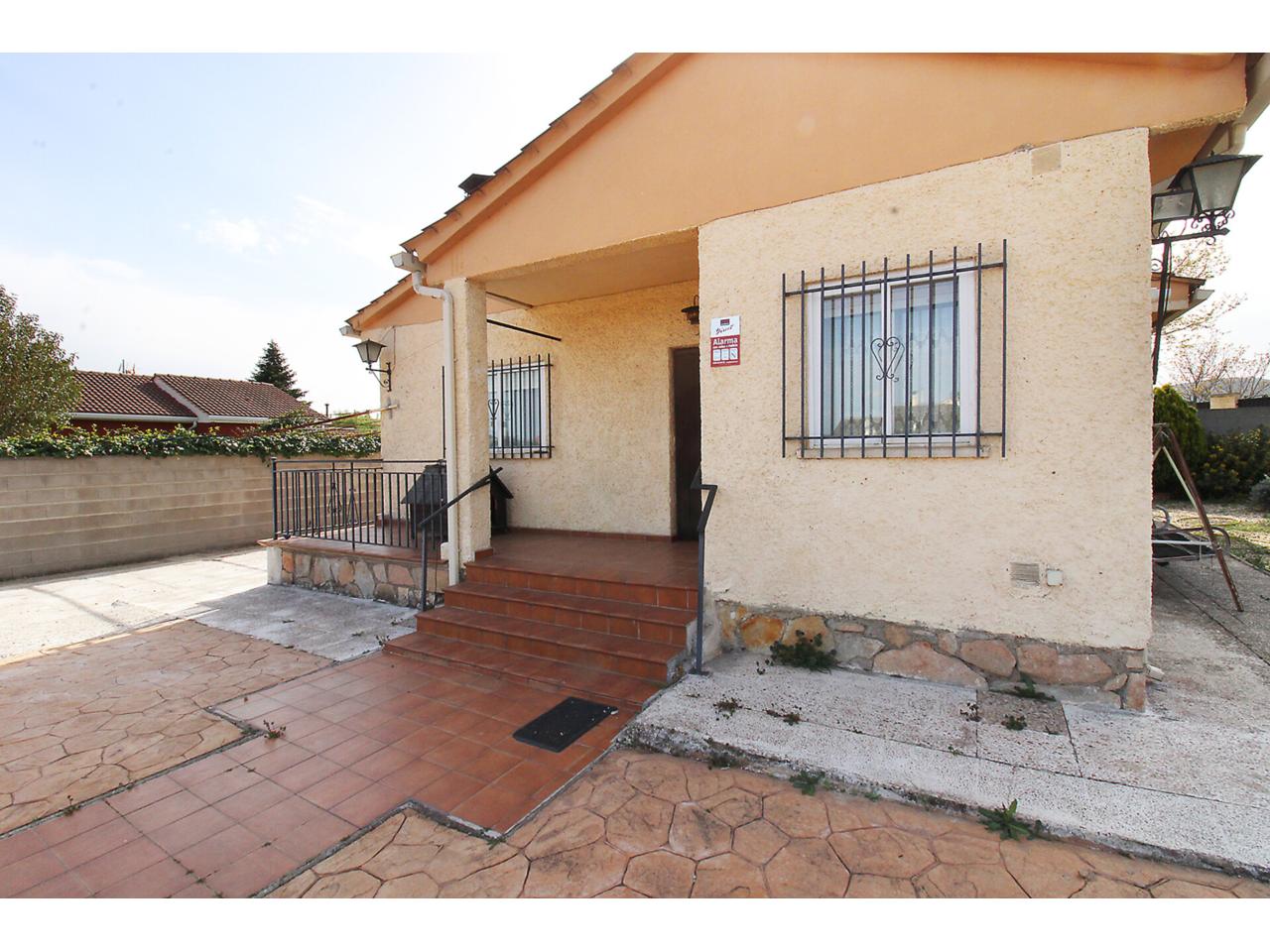 DescripciónChalet independiente en una sola planta con 102 m2 construidos sobre parcela en esquina de 704m2. La vivienda dispone de salón-comedor independiente. Cocina independiente amueblada. Dos amplios dormitorios con armarios empotrados cada uno. Cuarto de baño reformado con plato de ducha. Dispone de un tercer dormitorio adicional con armario empotrado en la planta primera con acceso desde el jardín. Garaje techado de obra con capacidad para 2 vehículos. Garaje exterior sin techar con capacidad para más de 3 vehículos. Cuarto de caldera de gasoil en la parte posterior de la vivienda. La parcela es bastante grande, la mayor parte se encuentra solada respetando una zona ajardinada amplia. Dispone de doble ventana con marco de aluminio con barrotillo. Puertas de madera. Suelos de tarima y porcelánicos. Paredes lisas.