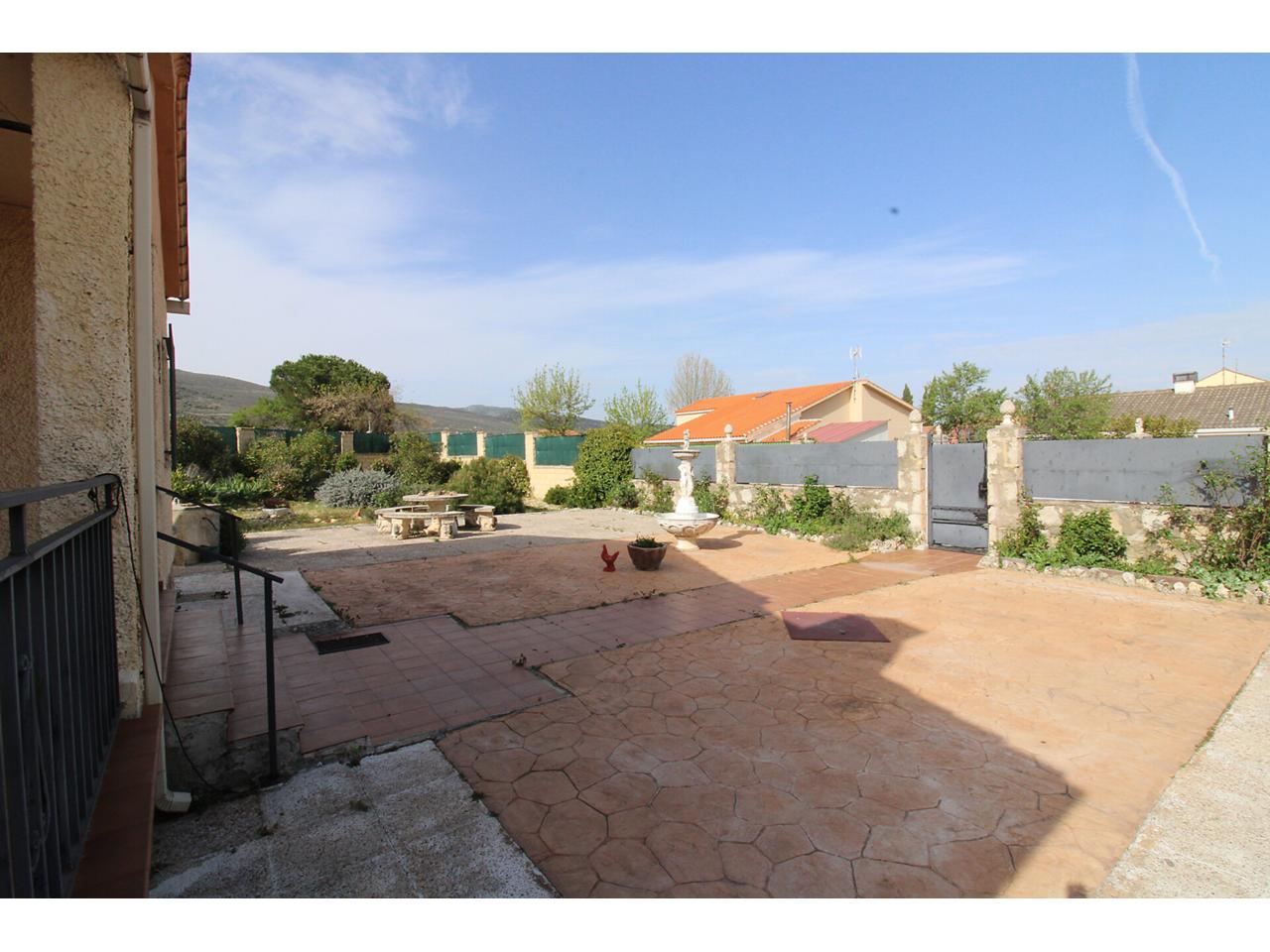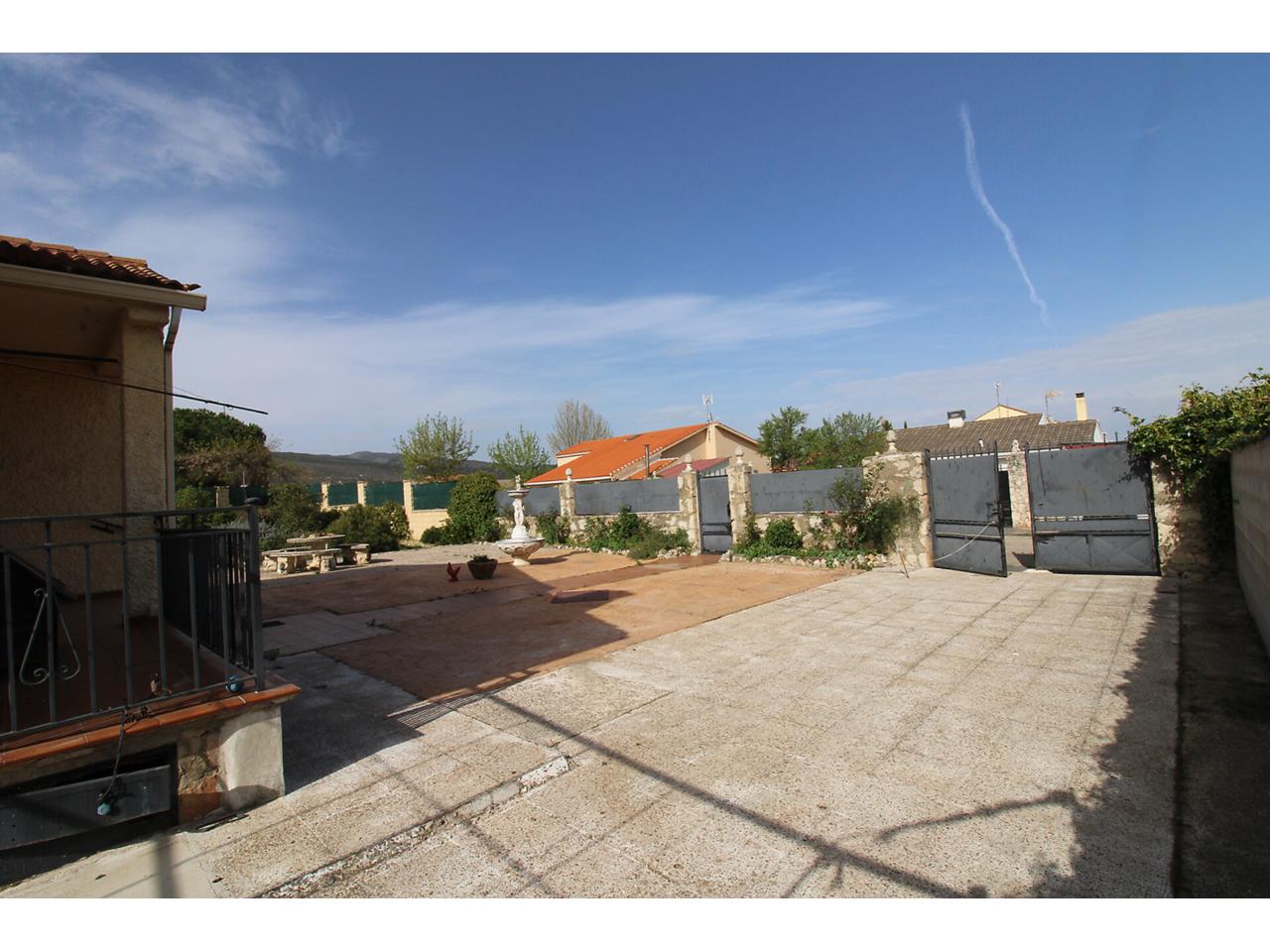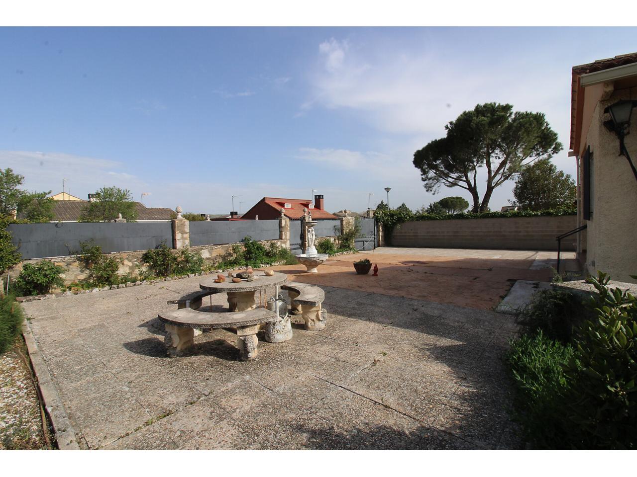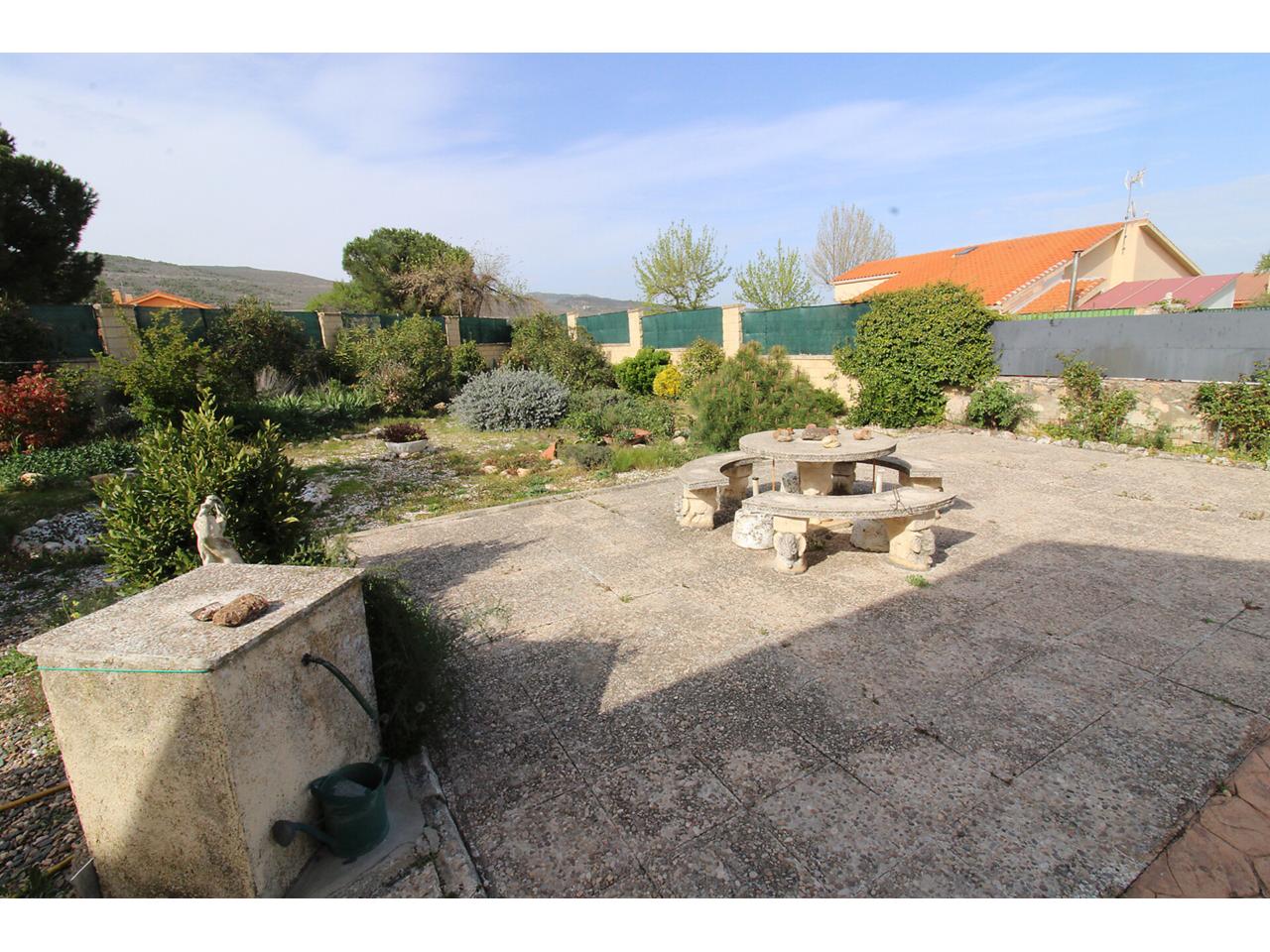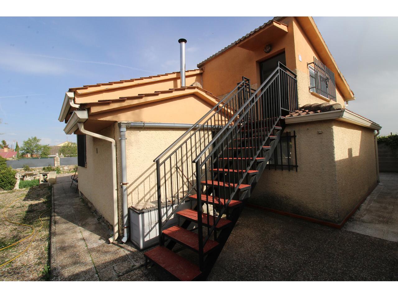 DescripciónChalet independiente en una sola planta con 102 m2 construidos sobre parcela en esquina de 704m2. La vivienda dispone de salón-comedor independiente. Cocina independiente amueblada. Dos amplios dormitorios con armarios empotrados cada uno. Cuarto de baño reformado con plato de ducha. Dispone de un tercer dormitorio adicional con armario empotrado en la planta primera con acceso desde el jardín. Garaje techado de obra con capacidad para 2 vehículos. Garaje exterior sin techar con capacidad para más de 3 vehículos. Cuarto de caldera de gasoil en la parte posterior de la vivienda. La parcela es bastante grande, la mayor parte se encuentra solada respetando una zona ajardinada amplia. Dispone de doble ventana con marco de aluminio con barrotillo. Puertas de madera. Suelos de tarima y porcelánicos. Paredes lisas.